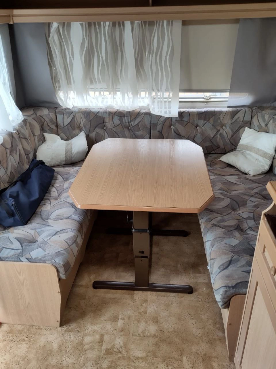 Der Boden des Wohnwagens wirkte zwar altmodisch, war jedoch erstaunlich gut in Schuss. Er steht jedoch noch auf unserer Renovierungsliste, da wir ihm eine zeitgemäße Optik verleihen möchten. Der Gasherd in der Küche hätte mehr Putzlappen sehen müssen, daher entschieden wir uns, die Küche komplett umzubauen. Diese Veränderung erwies sich als besonders lohnend, da wir nun unsere Mahlzeiten mit Freude zubereiten können.